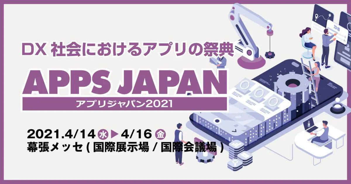 「APPS JAPAN アプリジャパン2021」は、APPS JAPAN 実行委員会主催、 株式会社 ナノオプト・メディアが運営する、日本最大級のアプリ展示会として、4/14より3日間開催されます。